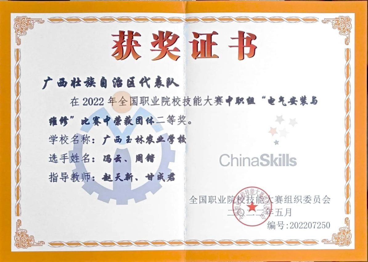 全国职业院校技能大赛中职组“电气安装与维修”比赛荣获团队二等奖